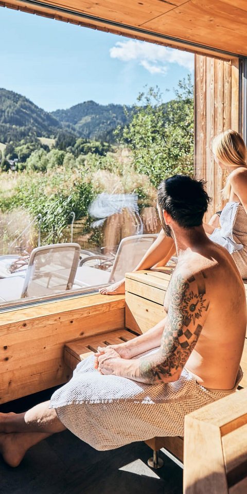 - soak up the mountain panorama from the hot sauna bench,
