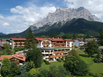 The Schönruh is a hotel for connoisseurs, families, children, dog lovers, hikers, nature lovers and, of course, bikers! After all, the hotel's home territory is the Zugspitz Arena in Ehrwald, which has been voted Austria's best mountain bike region several times. The typical Tyrolean architecture is the hallmark of this cosy sports hotel - situated directly at the foot of the Zugspitze in a sunny location.