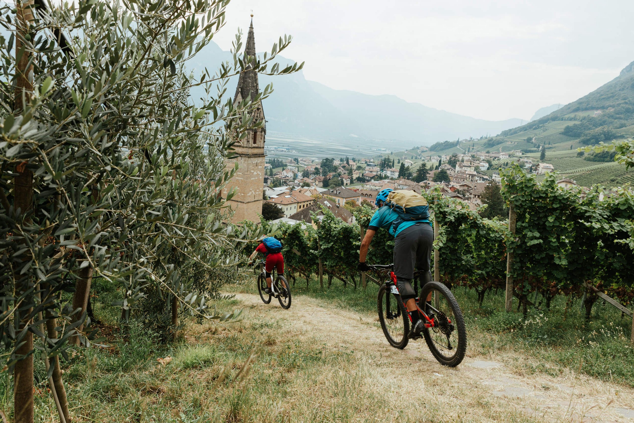 The Corno di Tres single trail is more than just a trail - it is a full-blown South Tyrolean trail tour. Experienced trail bikers will love the technical challenge on the towel-wide paths high above Tramin - South Tyrolean Unterland and the marvellous Lake Kaltern. After the sweat-inducing ride over 13 kilometres of secluded nature trails, a dip in the lake awaits as a reward. What more could a biker's heart desire?