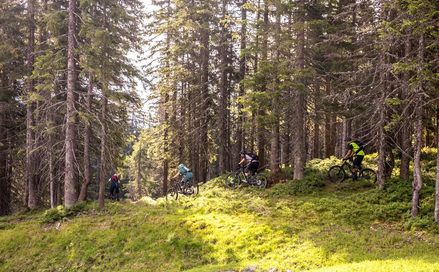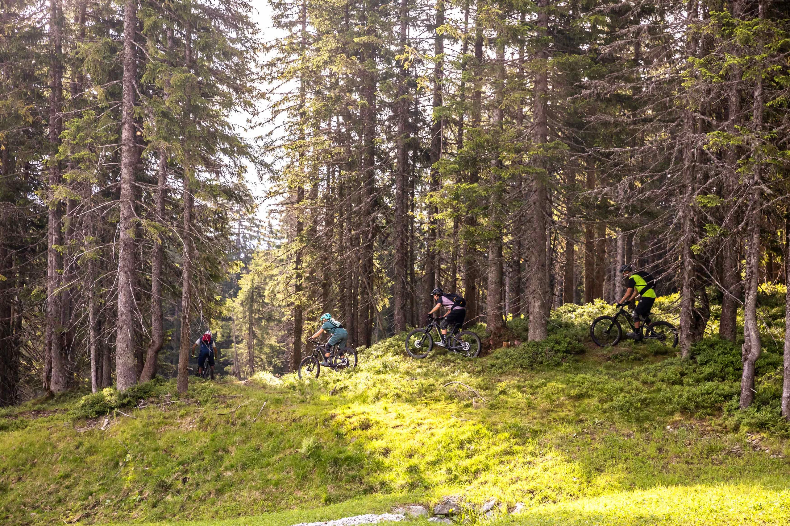 The Matzalm single trail in Leogang is a real nature trail: the hand-built nature trail with rooty passages, tight bends and WOW mountain views makes the hearts of trail bikers beat faster.