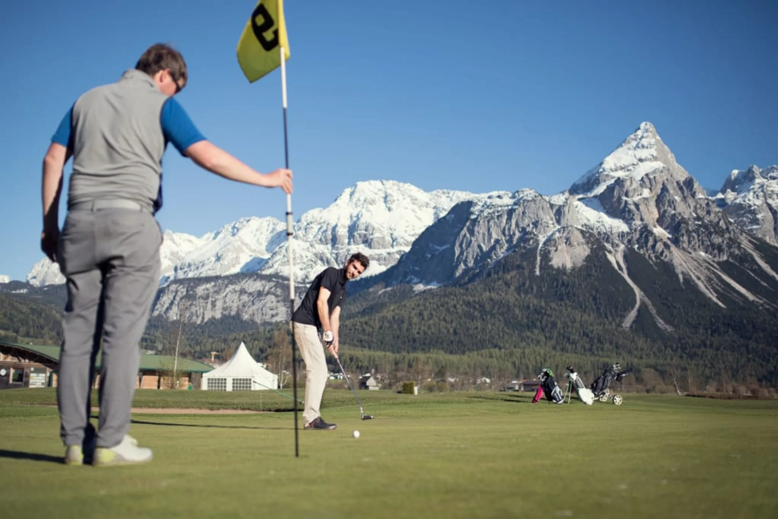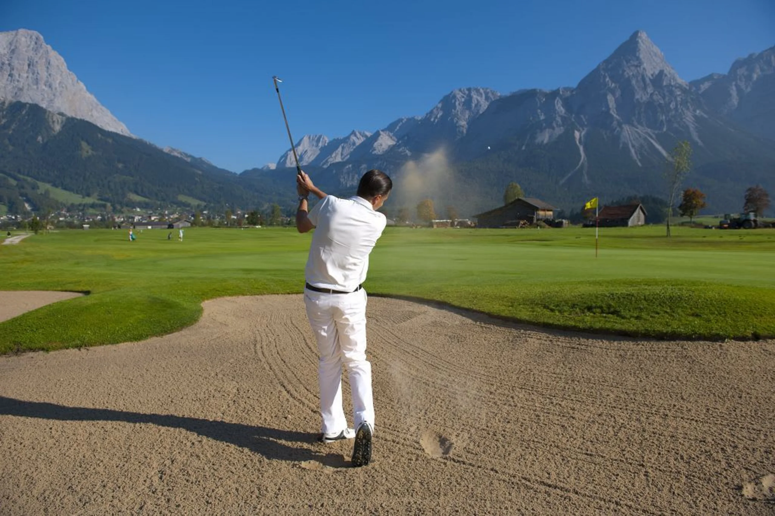 5 days pamper yourself half pension, 1 sport massage, 10 hours private lessons, driving range fees and balls during the course. The perfect setting, surrounded by the fantastic mounain scenery on the sunny side of the Zugspitze, to start golfing.