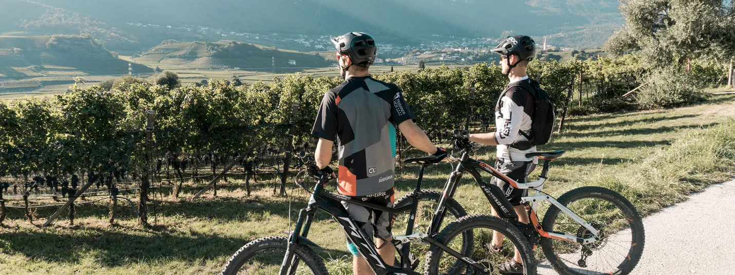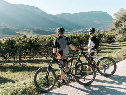 Tour to an impressive natural spectacle. Icicles and sub-zero temperatures well into June. Passing Lake Kaltern through the Lavason Valley, we arrive in Appiano. Here through the village, past the weekly market (Tuesday), we ride up to the Gleifkirche, where we enjoy a first beautiful view over the Überetsch. Now comes the impressive detour to the ice holes. A small hollow of 1,000m² at 550 m above sea level. The microclimate here is normally found at 1,500 m above sea level. Larches, alpine roses, ferns. And to top it all off, we see icicles. But we have to keep going. A long climb over forest paths takes us up to 900 m. Now the single trails begin, which take us above Kaltern to Altenburg. Another great view of Lake Kaltern before we speed downhill to Tramin.