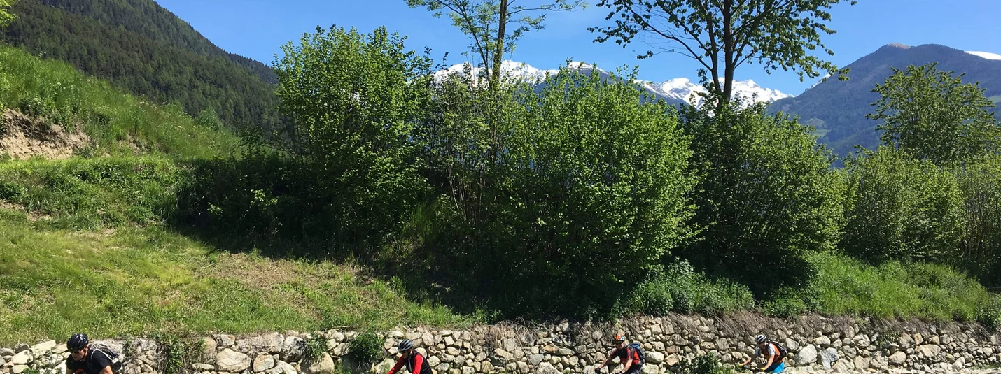 The sunny plateau north of Bruneck is home to old cart tracks, hiking trails and forest tracks with a lot of history to tell. Again and again, the views alternate with short and fun trail sections, which reach their peak in terms of difficulty towards the end. Along stone walls and past numerous old walls, the tour leads to Issinger Weiher, where we conquer another climb, which takes us back to the Bruneck basin via numerous trails.