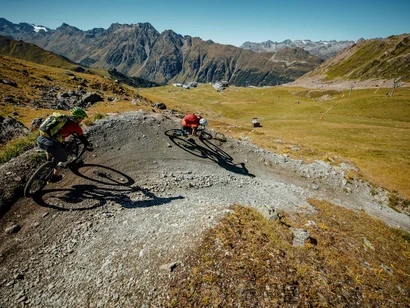 At around 95 kilometres, the Verwall circuit is one of the longest routes in the Mountainbikers Paradise, and it is also a classic - the ideal mountain bike tour. Starting from Pians, the tour takes you via Strengenerberg on varied trails to Flirsch, at the beginning of the Stanzertal cycle path. By choosing the route over Strengenerberg, we avoid the main road, though this adds a few extra metres of altitude due to the longer route. From Sankt Anton, the tour joins the Transalp route and leads through the Verwall to the Heilbronner Hütte, the highest point of the tour. The ascent through the Verwall is mostly a pleasant climb to the start of the Verwall Trail and is easy to master. On the Verwall trail itself, there is an irrevocable stretch of pushing and carrying, but this is a minor inconvenience given the tour.´s overall lenght. From the Verwall, we cross the Kops reservoir into Paznaun with stunning views of the Upper Montafon. Along the way, we pass the European watershed of the Rhine and Danube. The route then continues along a well-developed and varied valley cycle path out to Kappl. Anyone thinking the tour is over will be mistaken - as the Paznaun valley continues, the valley path often turns into a more technical trail, adding extra challenge and variety. Although we head out through the valley and lose a lot of altitude, the many small climbs add up to a total of 2,100 metres of ascent at the finish in Pians after around 9 hours of riding. Worth seeing: Ancient Roman traces in Lerch, Kops reservoir, European watershed Rhine-Danube, Alpinarium Galtür, Mathon church, Wiesberg Castle, Trisanna bridge of the Arlberg railway