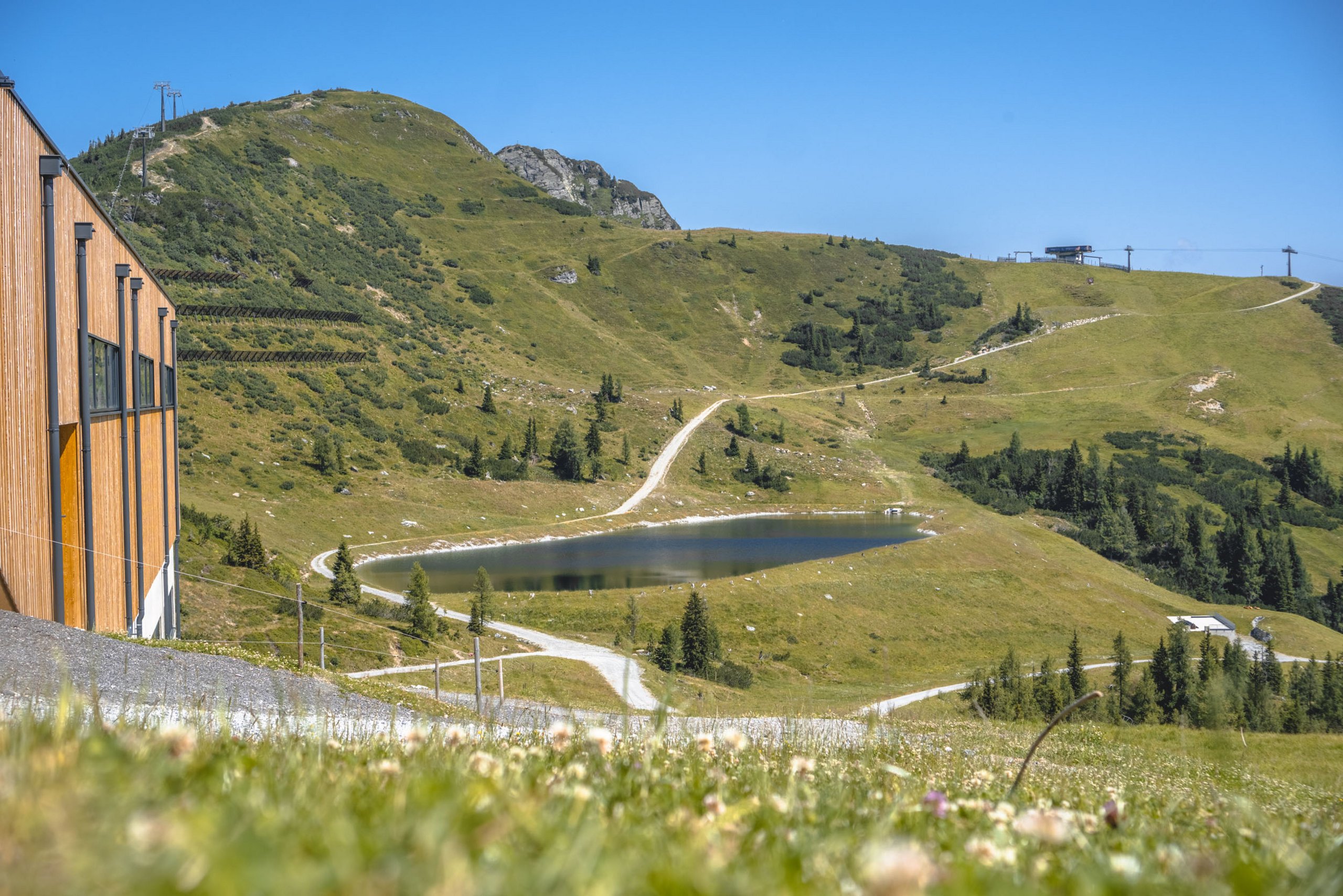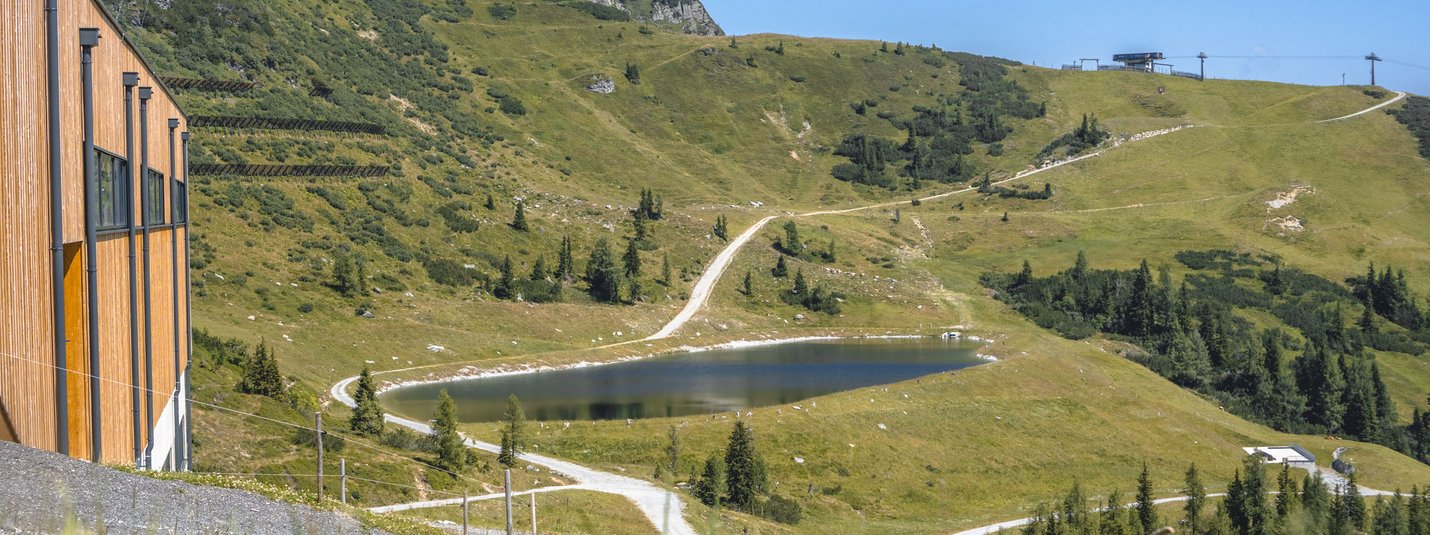 We take a leisurely ride along the Enns cycle path to Altenmarkt, where the actual tour to Zauchensee starts. We cycle into the valley along the Zauchbach stream, past cows, water fountains and an adventure trail. At the end of the tour, we stop off at the Garnhofhütte and enjoy a cool drink.