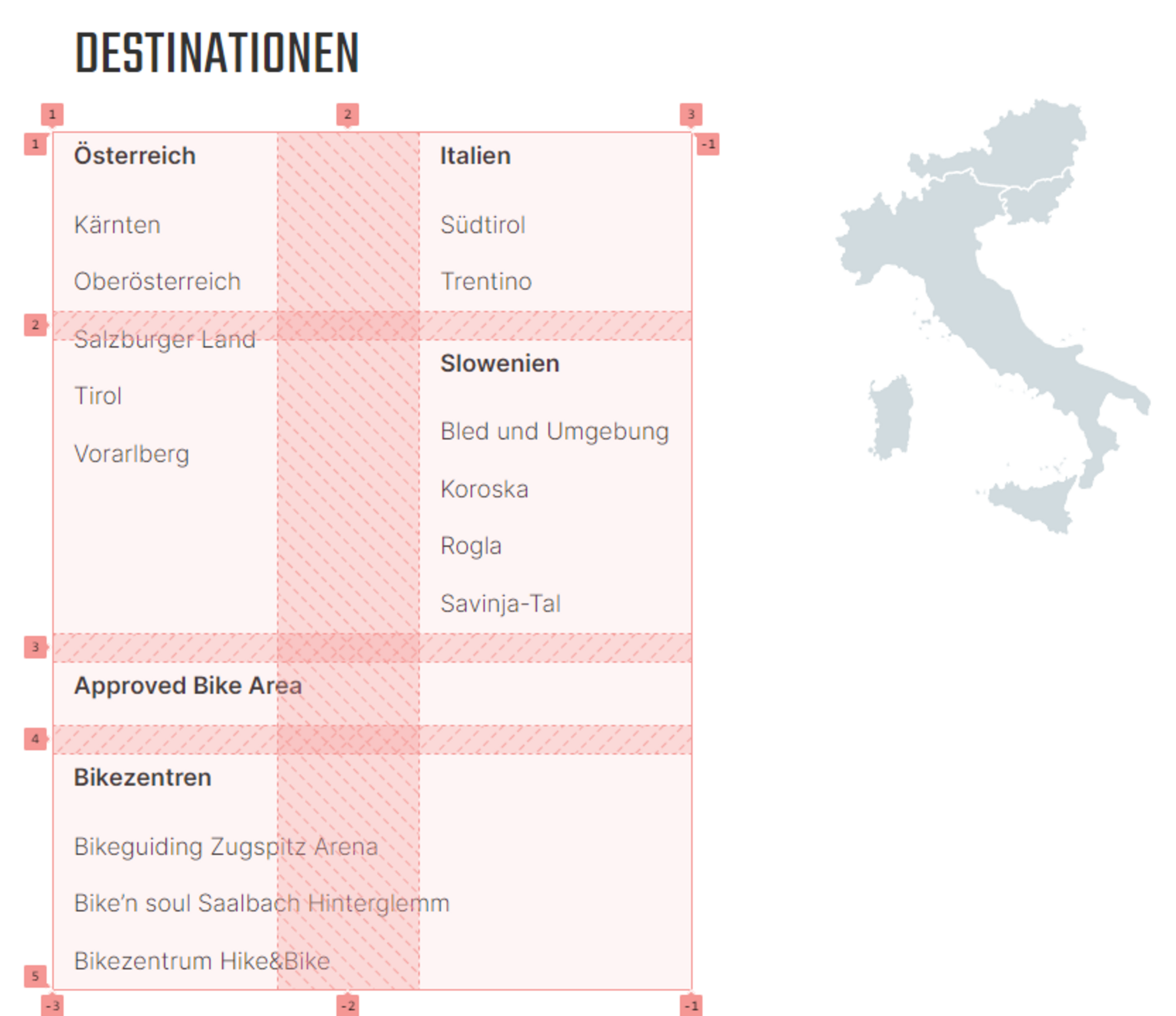 - Kein Eintrag bedeutet, dass das Menü Item dieser Seite in der Breite zwei Blöcke einnimmt und in der Höhe nur einen.