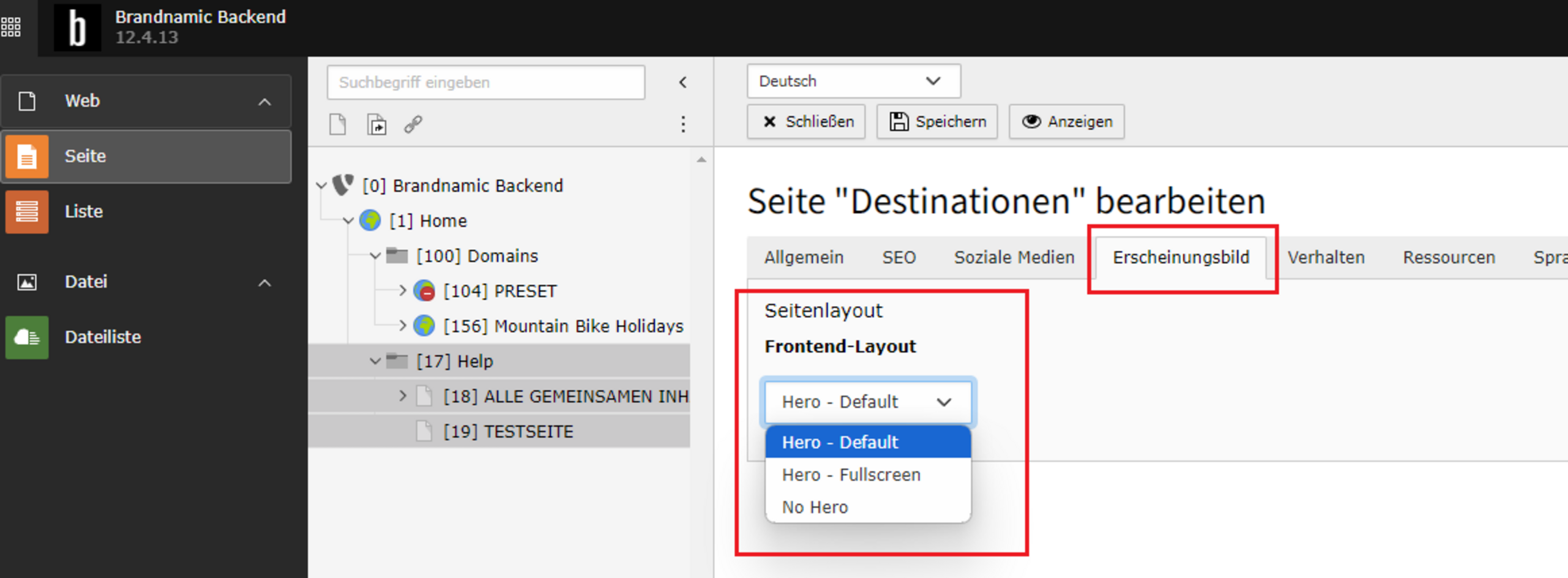 Sind auf einer Seite keine Bilder gepflegt, obwohl z. B. ein Hero „half“ eingestellt wurde, dann werden die Bilder von der übergeordneten Seite ausgelesen und somit vererbt.