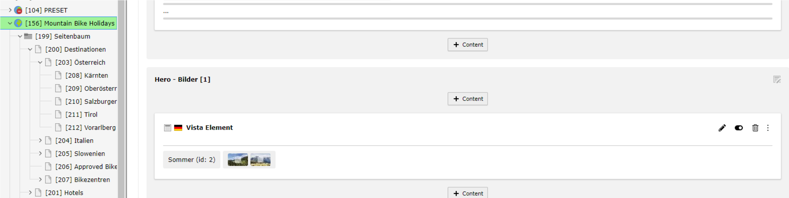 Die Hero-/Vista-Bilder können pro Seite im Typo3 in der Spalte „Hero-Bilder“ im Element „Vista Element“ gepflegt werden.