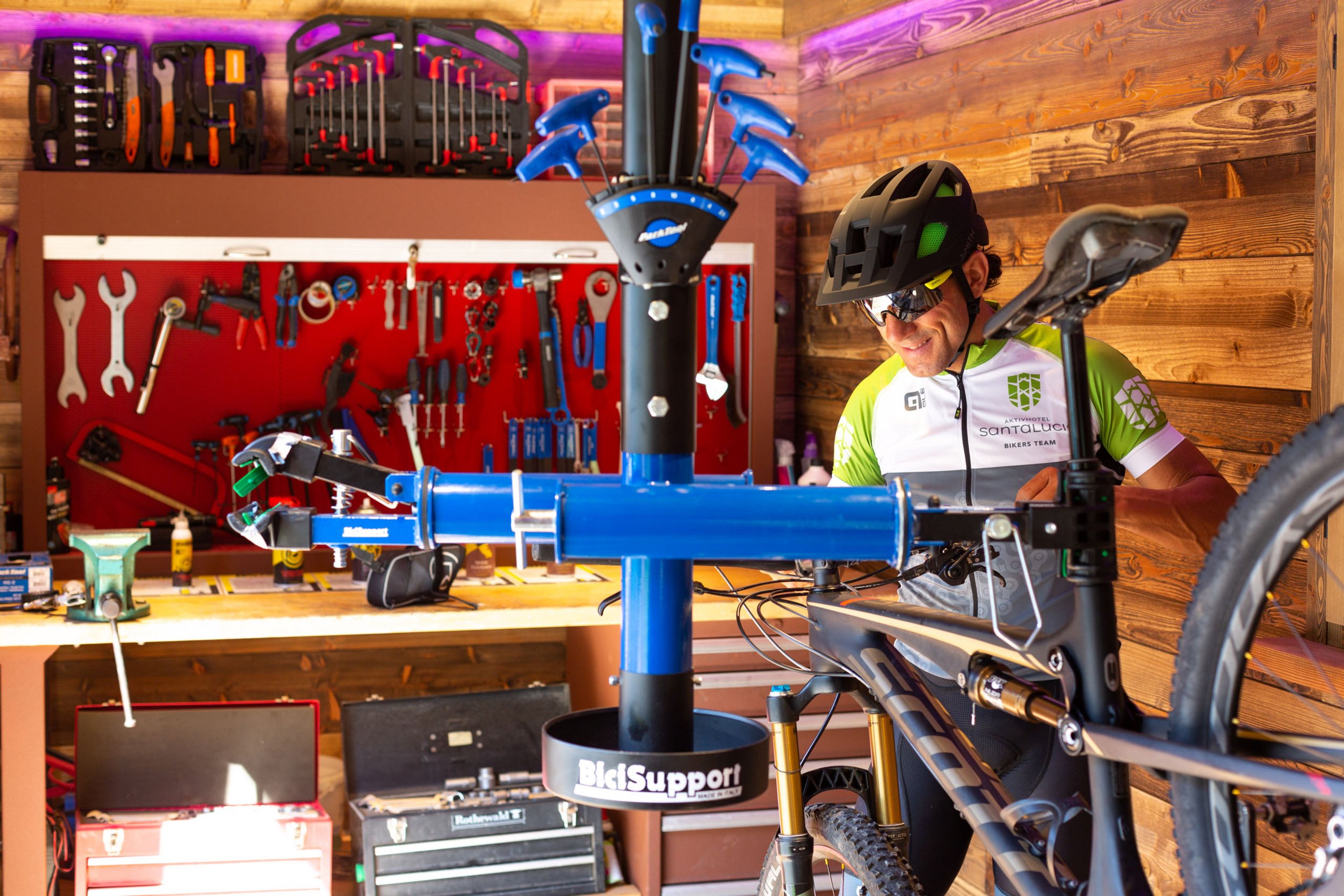 - Werkstattbereich für kleine Wartungsarbeiten und eine große Auswahl an ParkTool® Werkzeugen