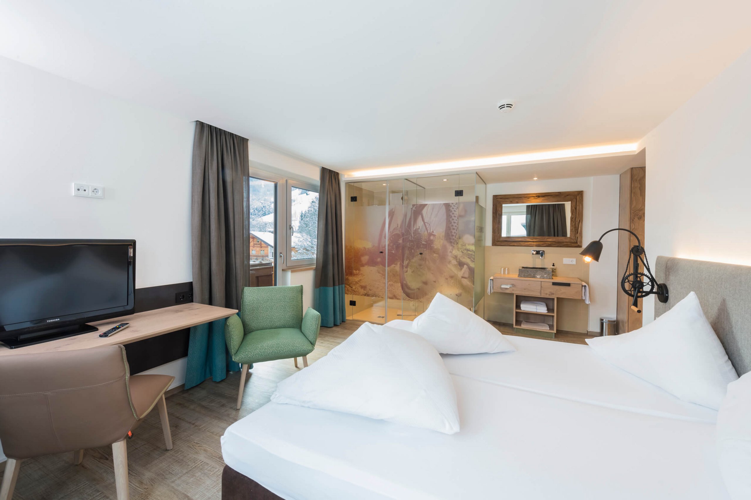 „Ich will, dass jeder Gast die Berge mit dem gleichen Lächeln verlässt, mit dem ich sie jeden Tag begrüße“, sagt Tom. Wer ohne eigenes Bike anreist, kann sich direkt im Hotel ein hochwertiges Touren- oder e-MTB von Husqvarna oder Raymon leihen – perfekt gewartet und bereit fürs nächste alpine Abenteuer.