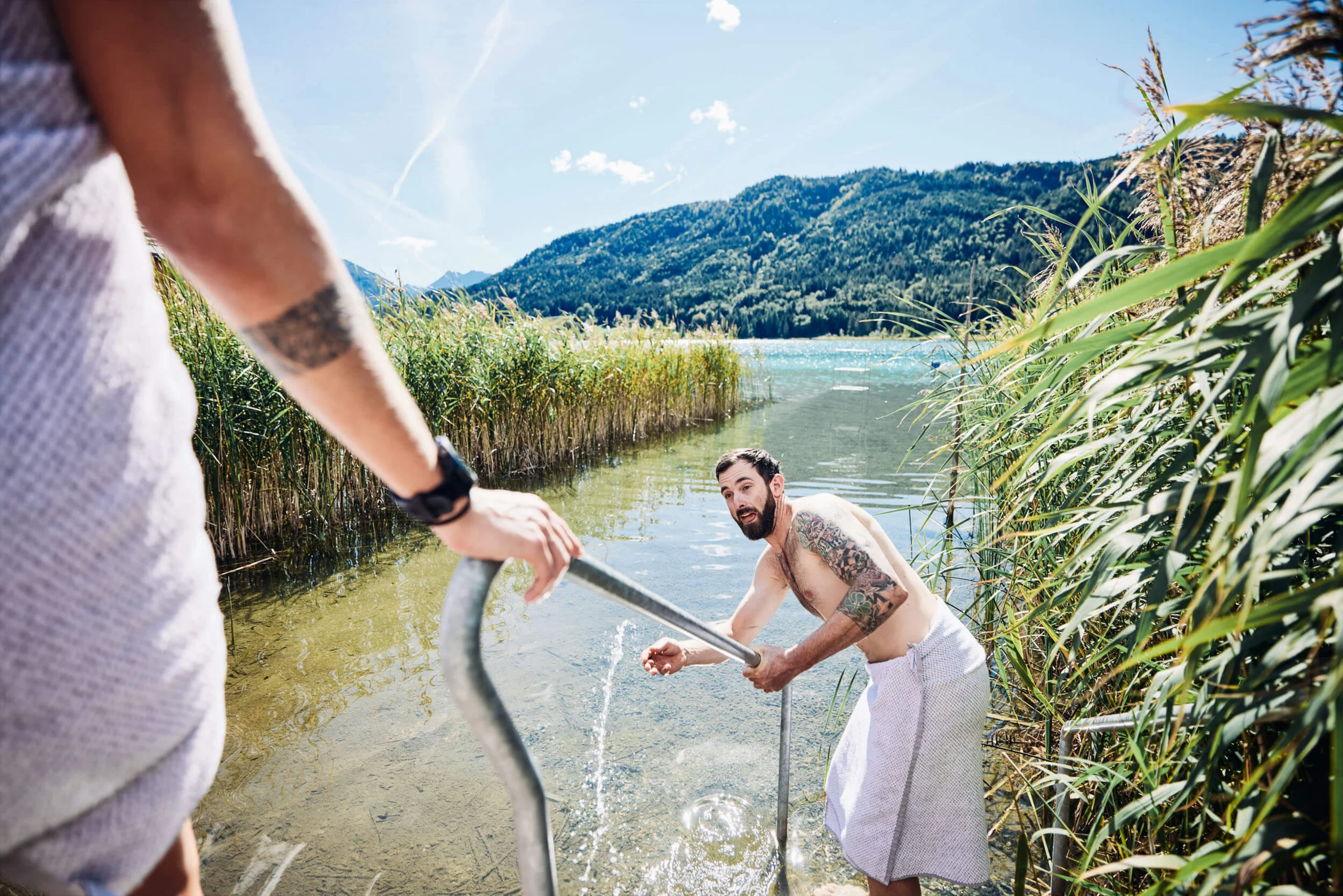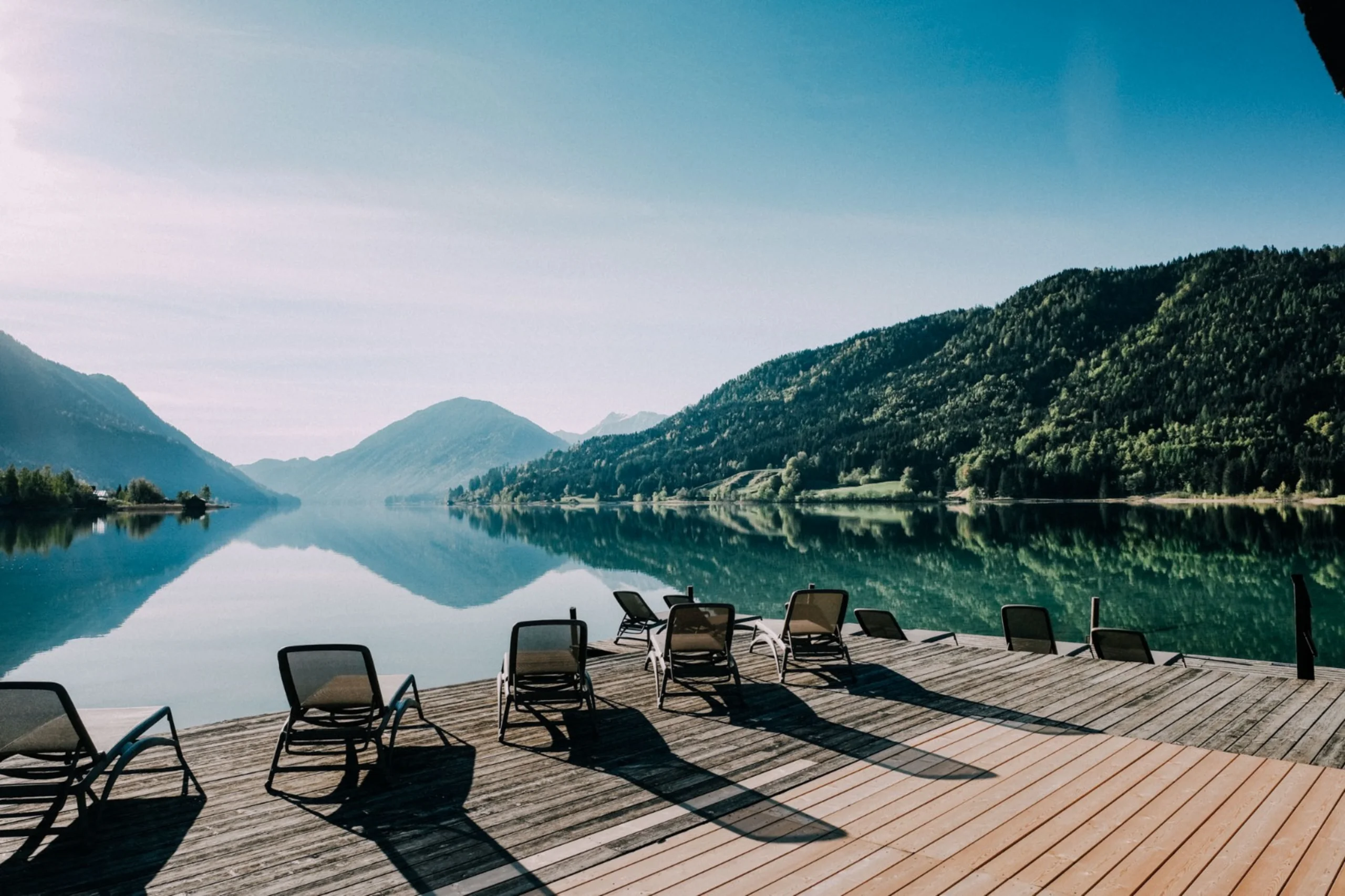 Entdecke deinen Rückzugsort direkt am Weißensee – einem echten Must-Do für Naturliebhaber. Bereits seit 1911 kommen Gäste zur Sommerfrische in das kleine Kärntner Hotel, das mit seinen großzügigen Seeblick-Chalets und Appartements den karibisch-türkisen See und die Gailtaler Alpen direkt ins Zimmer holt. Der See ist hier zentrales Element – vom eigenen Badestrand aus, ist er nur einen Sprung entfernt. Und vor der Haustür starten auch die Mountainbike-Touren durch den Naturpark Weissensee: auf die bewirtschafteten Almen, die umliegenden Täler und Trails rund um den saubersten See Kärntens – mit zertifizierter Trinkwasserqualität! Zertifiziert sind im Hotel Regitnig auch die Gastgeber – und zwar als Bike-Guides. Unterstützt werden Michael und Jasmin Eder dabei von lokalen Guides, die dich auf geführten Touren in die Gailtaler Alpen mitnehmen.