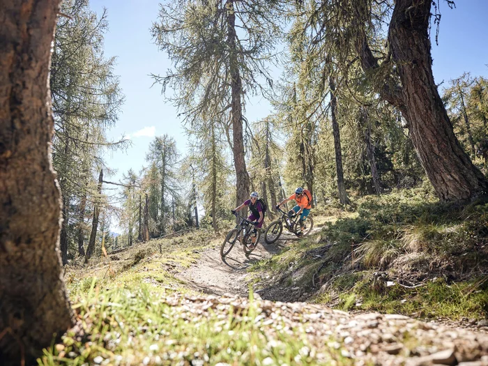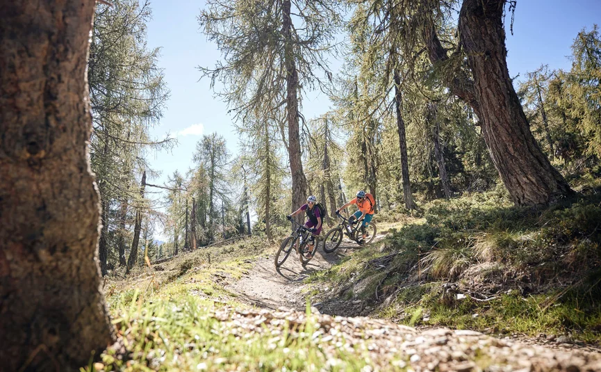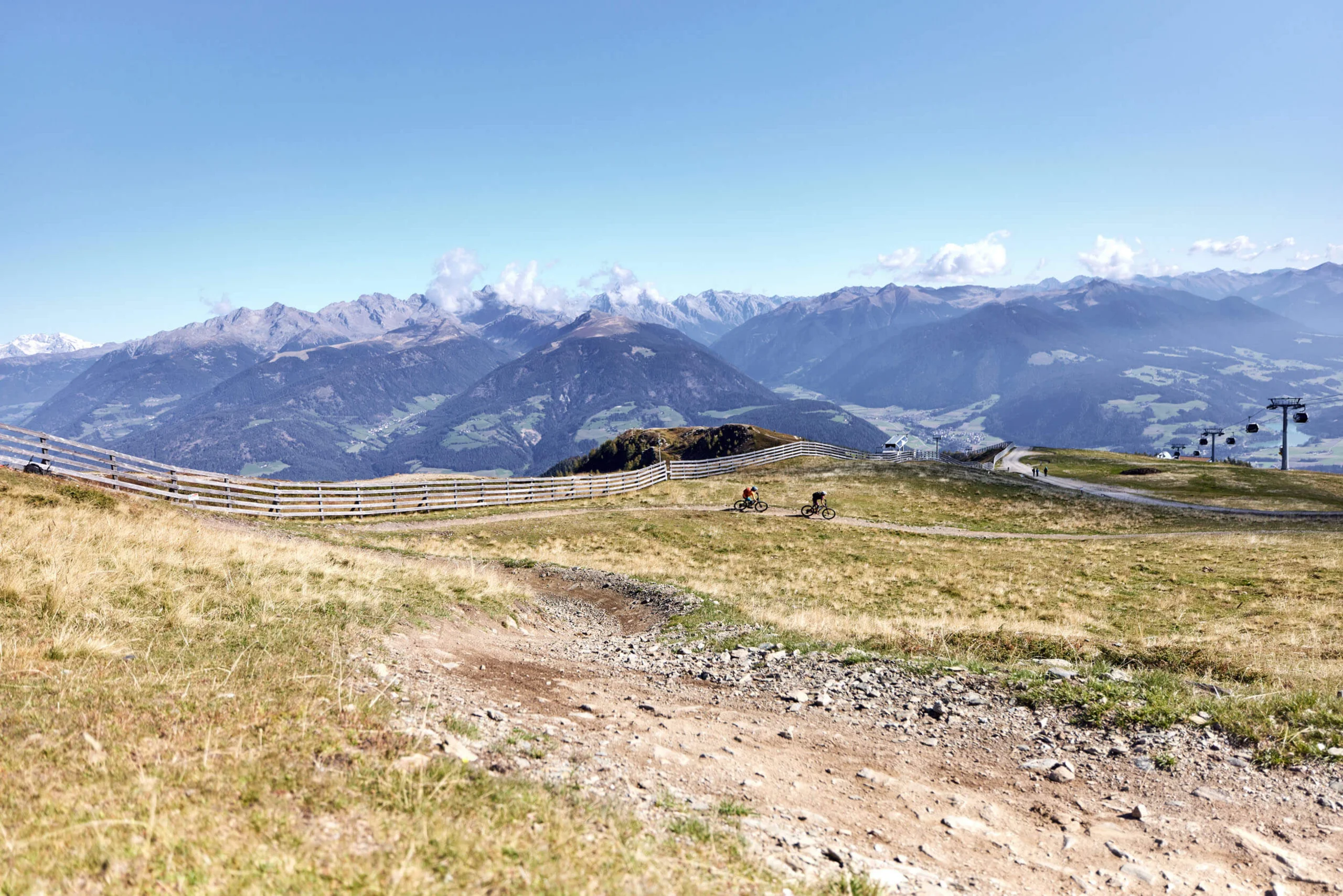 Beim Mountainbiken am Kronplatz sind die imposanten Dolomiten immer im Blick. Perspektiven und Panorama bieten auf dem besonders einsteigerfreundlichen und beeindruckend langen Singletrail am Kronplatz zahlreiche WOW-Momente. Der Blick ins Pustertal und zwei außergewöhnliche Berg-Museen auf 2.275 m Höhe bilden den perfekten Rahmen für den Gassl Trail.