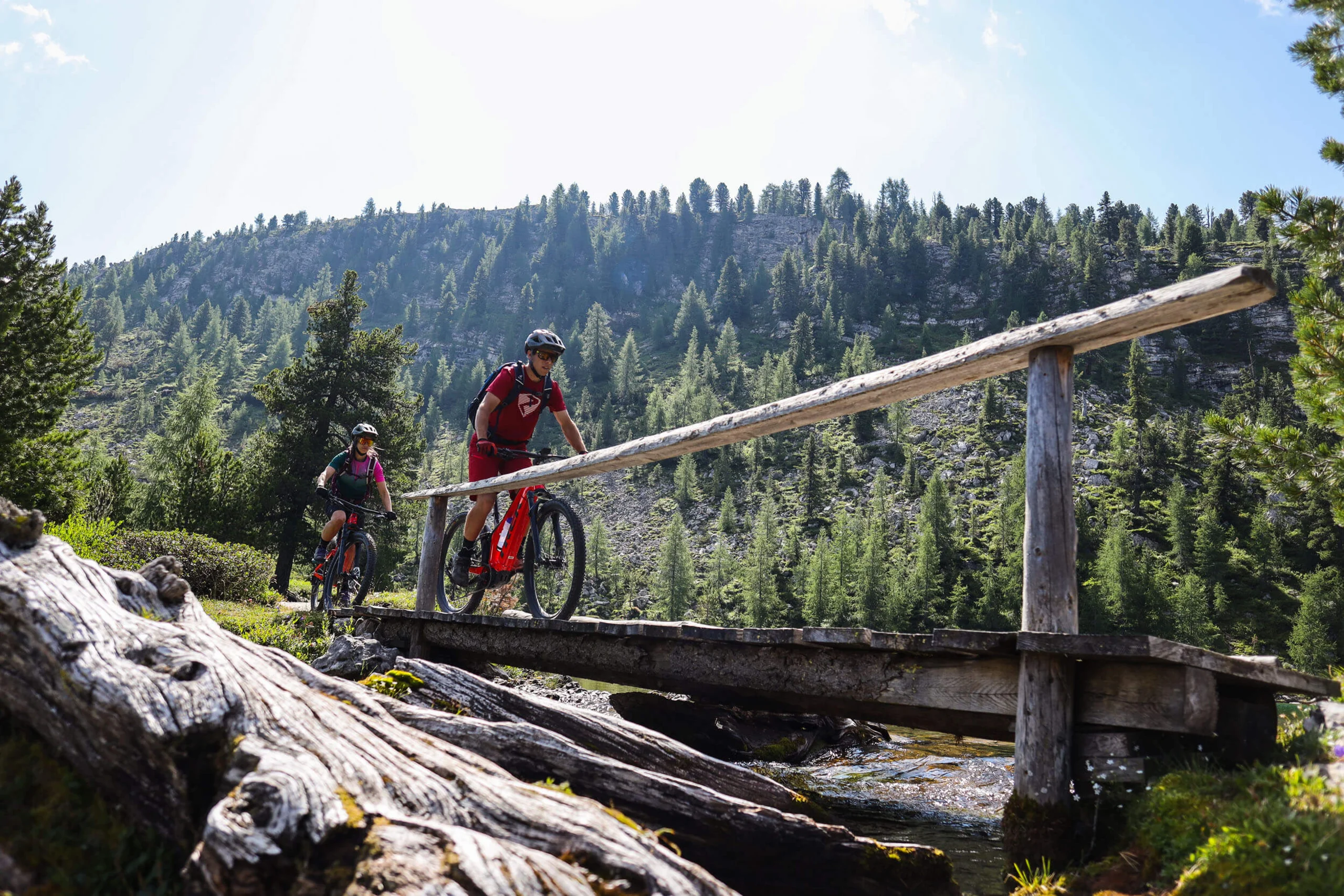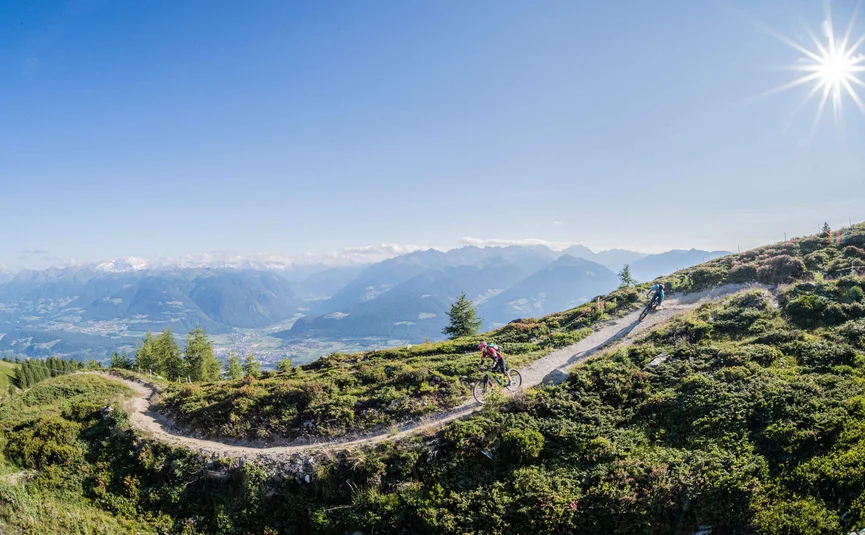 Es gibt wohl kaum einen legendäreren Singletrail, als den Herrnsteig in der Region San Vigilio Dolomites. Der natürliche, alpine MTB-Singletrail der Extraklasse wird vor allem versierte Biker begeistern. Zum Einstieg geht's bequem mit der Bergbahn – auf dem Weg warten mit Hans und Franz zwei tolle Trail-Varianten.