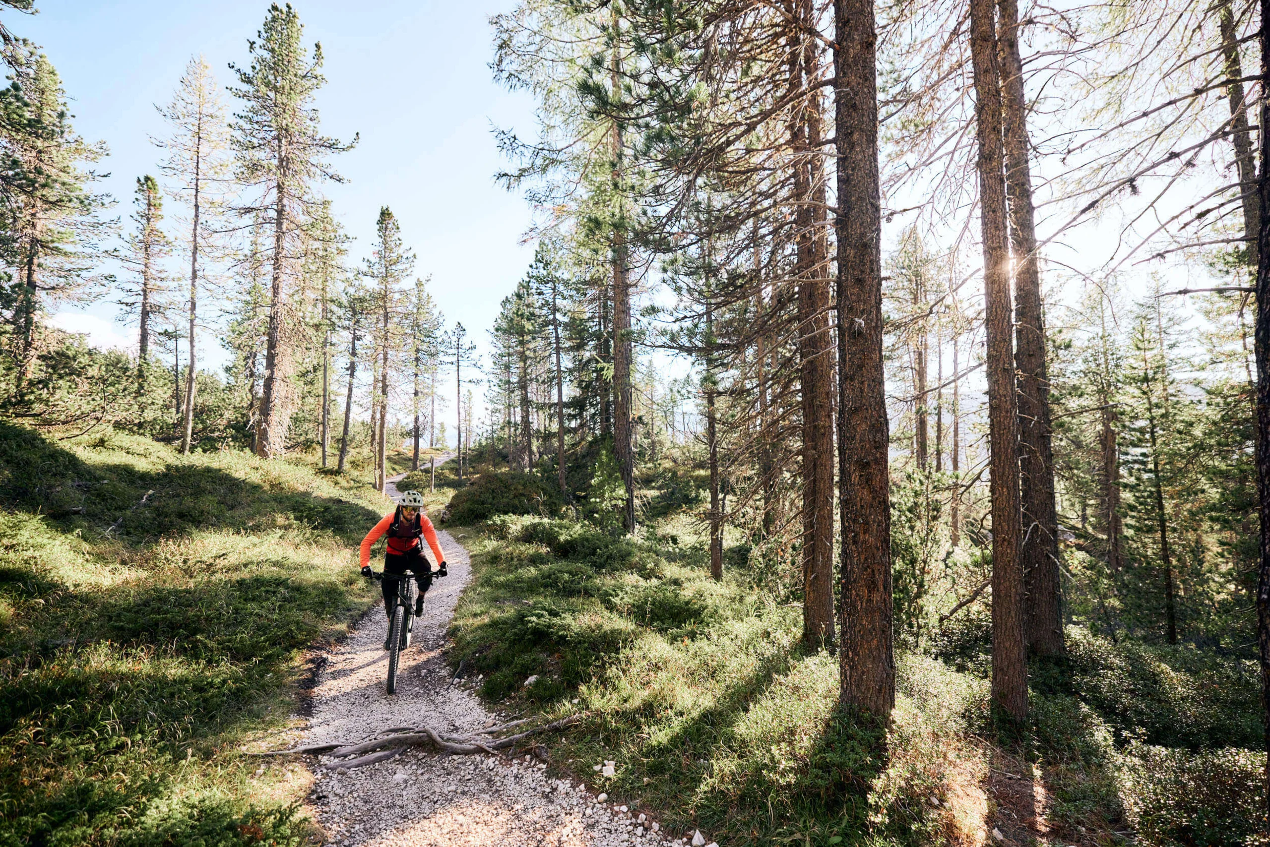 Latschentrail: Der erste Teil führt halboffen mit Blick auf die hinter liegenden Felstürme durch Latschenkiefernbestand. Da ist einfach alles dabei.