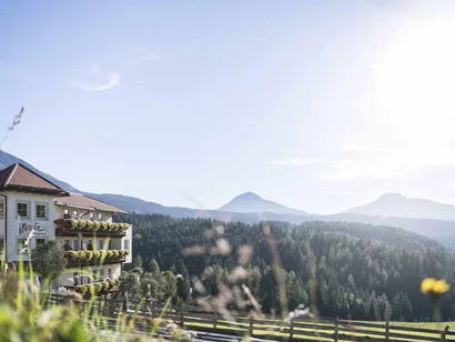 Natuurgidsen, fietsgidsen en berggidsen - als je een kijkje neemt bij het team rond gastheer en fietsfanaat Christoph Kofler, weet je meteen wat er hier aan de hand is: Echte ervaringen in plaats van entertainment. Omdat het buiten het beste is. Vooral hier, in het hart van de Dolomieten. Ontdekkingsreizigers en avonturiers zijn hier zeker op de juiste plaats. #Verveling? Hier niet - noch voor jongeren, maxi's of mini's. En ook niet voor ouders. Want in plaats van alleen kinderopvang zijn er ook activiteiten: Mountainbiketochten, technologiekampen, bostochten, wandelingen en klimexcursies in de klimtuin in de Dolomieten of het hoge touwenparcours. Activiteitenprogramma - voor elke leeftijd en elk temperament!