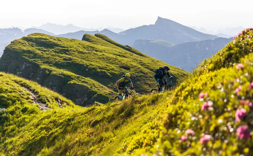 Mountainbikevakantie in Vorarlberg: Ervaar topfietsregio's, indrukwekkende trails & tours en op kwaliteit geteste hotels met hart, helm & thuisvoordeel. Stap in het zadel en ga op weg!