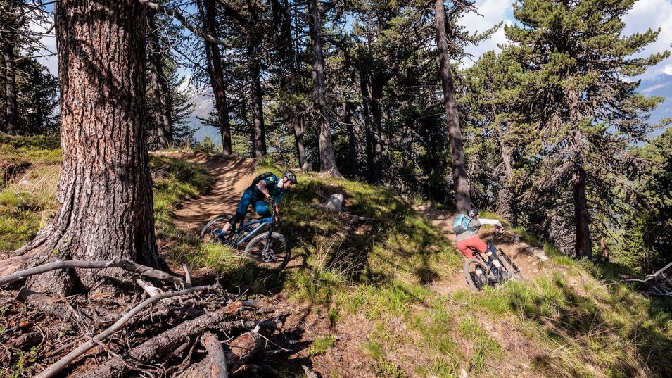 Kijk uit naar de verschillende gemarkeerde routes: De blauwe (makkelijke) gemarkeerde routes bij Lake Reschen zijn ideaal voor beginners. De "rode" route brengt veel grind onder je banden of neem de "zwarte" drielandenroute met single trails door het Val d'Uina, over de Schlinigpas of over de Schwarzsee - laat je tourplanning de vrije loop. In de 3-Länder Bike Arena voeren de tochten en trails je door Oostenrijk, Italië en Zwitserland. Onze tip: mis de Plamort Trail niet!