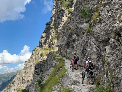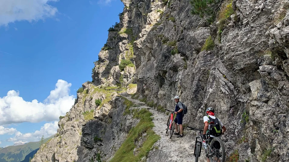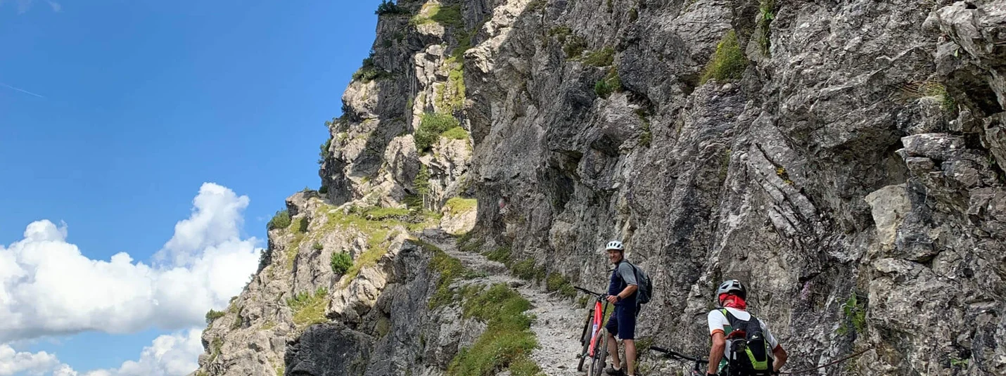 Deze mountainbiketocht voert door afwisselende landschappen en is dankzij de gematigde hellingen ook geschikt voor beginners. Vanuit Bizau fiets je over de geasfalteerde tolweg door bossen vlak voor de Vorsäßsiedlung Schönenbach. Tip: Een omweg naar de prachtige Vorsäßsiedlung Schönenbach (ca. 1 km) is de moeite waard. Sla nu rechtsaf een goederenweg op en ga gestaag bergopwaarts naar de Stogger Sattel. Vanaf hier heb je een prachtig uitzicht over de bergen van het Hinterer Bregenzerwald. Daarna volgt een aanvankelijk steile afdaling over het alpenpad en vervolgens een aangename afdaling over een smalle asfaltweg langs bergweiden. Neem vanaf Au het fietspad langs de Bregenzerache naar Schnepfau. Na de 1,5 km lange, steile slotklim bereik je het district Schnepfegg. Vanaf daar neemt u de bergweg met weinig verkeer naar Bizau.