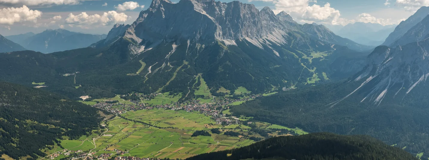 Von der Ehrwalder Alm geht’s aufwärts entlang dem Hauptweg. Nach zwei Kehren erreicht man den höchsten Punkt auf 1.600 m Seehöhe. Kurz danach hält man sich an der markanten Abzweigung zur Seeben Alm links Richtung Leutasch (551). Bei einem Abstecher zur Tillfuss Alm oder Gaistal Alm wird man mit einem eindrucksvollen Blick auf die steil abfallenden Nordwände der Mieminger Kette belohnt. Wir radeln den Hauptweg entlang durch das Gaistal, vorbei an der Mautstelle bis in den Leutascher Ortsteil Plaik. Hier die Brücke überqueren und nach Obern fahren, orientiere dich am „Hotel Bergland“. Nun geht es über die nächste Straße Richtung Leutasch/Oberweidach.