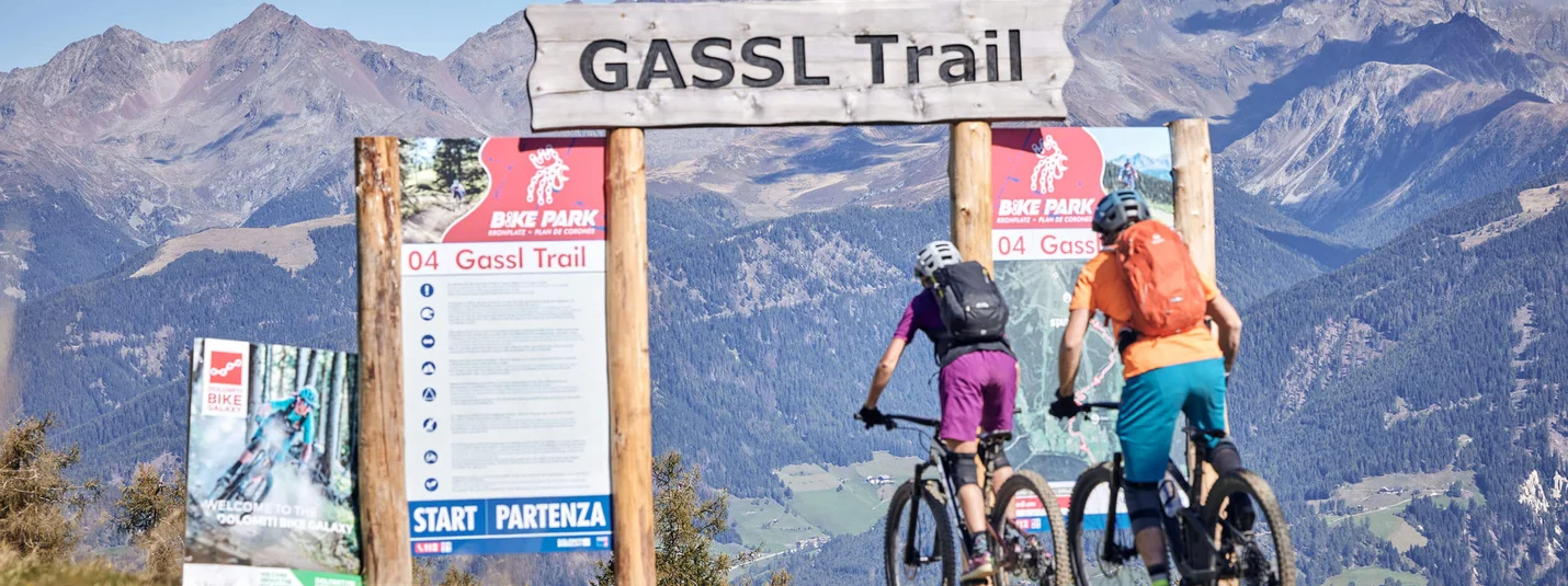Der jüngste Trail auf dem Kronplatz und gleichzeitig der Einfachste. Der Gassl Trail – er wurde im Sommer 2015 seiner Bestimmung übergeben – schlängelt sich am Osthang des Berges von der Mittelstation der Umlaufbahn OLANG 1 + 2 über unzählige Kurven bis hinunter nach Gassl. Leichte Sprünge, wenig geneigte Anliegerkurven und die abwechslungsreiche Linienführung lenken nicht vom fantastischen Panorama ab und sind ideal für erste Freeride Schnuppertouren.